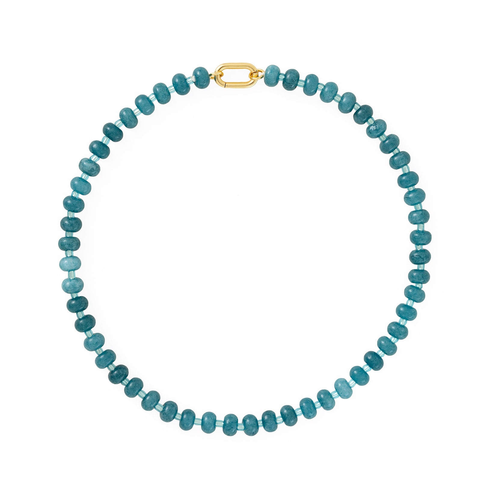 The Blue Beaded Necklace includes polished blue beads for a pop of color and a gold clasp. This statement piece will bring together any outfit.